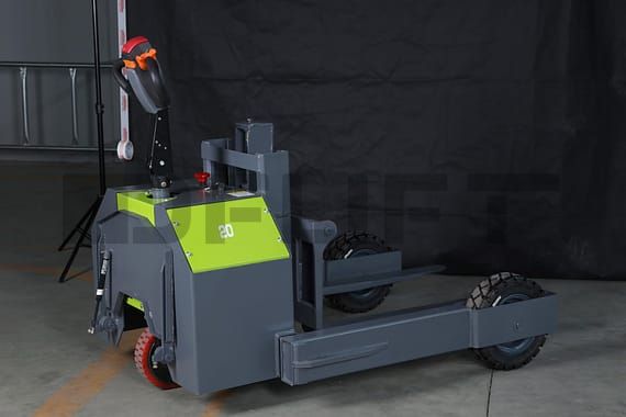 Outdoor off-road pallet truck adopts solid rubber wheel, ground clearance reaches 110mm, support leg width can be adjusted, can work on the outdoor unhardened ground and indoor, meet more occasions. Stand-on operation with high power lead-acid battery, easy and stable operation, reliable performance.